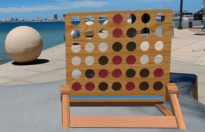Play the classic 4 in a row game within the real world. Whether on a coffee table, at the beach or in bed.
